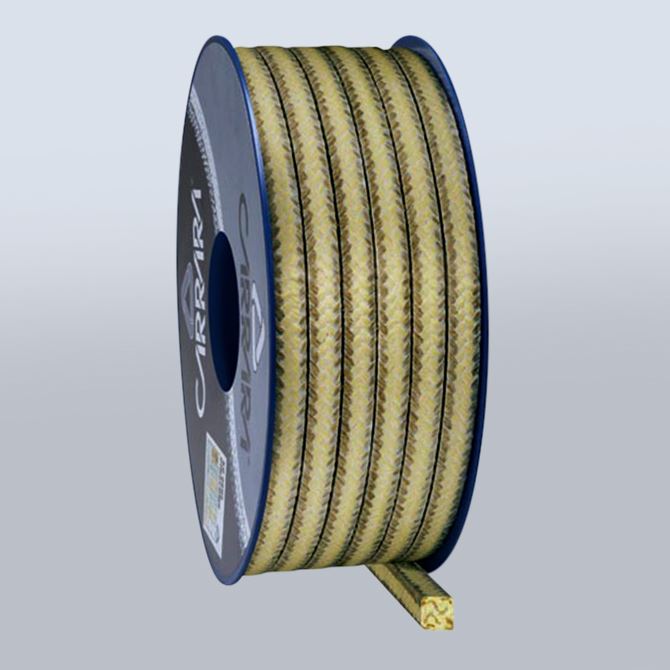 Empaquetadura de compresión KD6605 DINACOMB ® está hecho con hilos de aramida y de PBI que reduce el coeficiente de fricción. La impregnación, que viene en tres pasos, en los hilos, durante el trenzado y en el cuerpo, da a la empaquetadura gran flexibilidad y resistencia al desgaste.